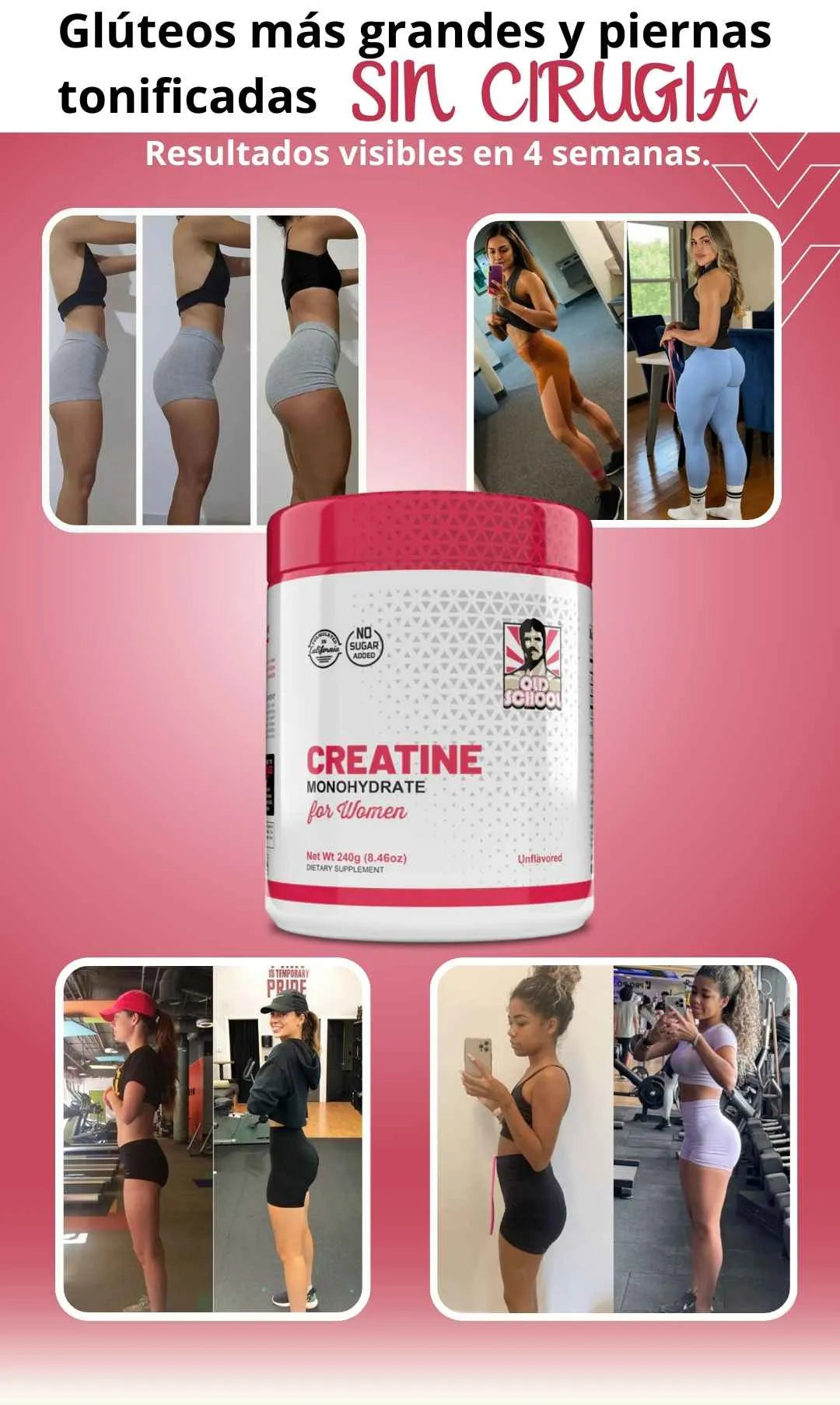 No. La creatina ayuda a tonificar y definir tus músculos, no a aumentar volumen excesivo. Notarás piernas, glúteos y abdomen más firmes y definidos.